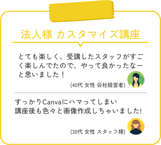基本的な使い方からデザインの基本的なことまでお悩み解決!大勢の前では質問しにくいことはこちらへ。あなたの課題に合わせて個別サポートします。